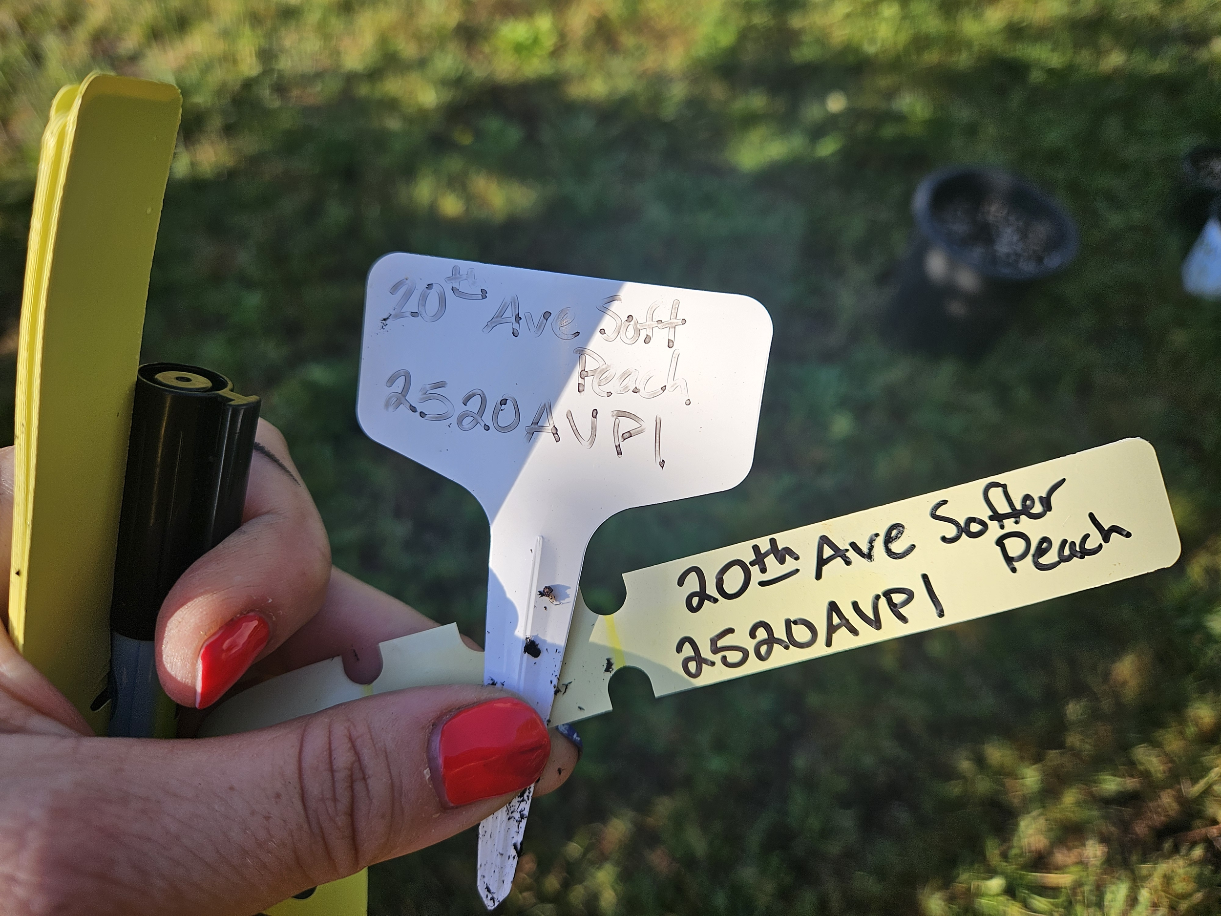 The main thing you want to look for when shopping for your marker for is the phrase “UV Fade Resistant”. The package can read ‘outdoor marker’, ‘permanent marker’, ‘indeliable ink’, ‘for industrial use’ or whatever I don’t care…. but if it doesn’t say “UV FADE RESISTANT” you WILL end up with faded ink and a summer full of re-writing plant tags. Which will inevitably mean not being able to decipher your faded scratch marks and you will lose any hope of accurately identifying your dahlia in the future. You will also end up with your own made-up names like “purple one that can’t die” or “pink frilly one” or “the one Grandma gave me.” Which there’s nothing wrong with that! But if you’re trying to keep track of tubers you’ve already purchased or trying to plan your summer garden…. knowing what you have can be really important.